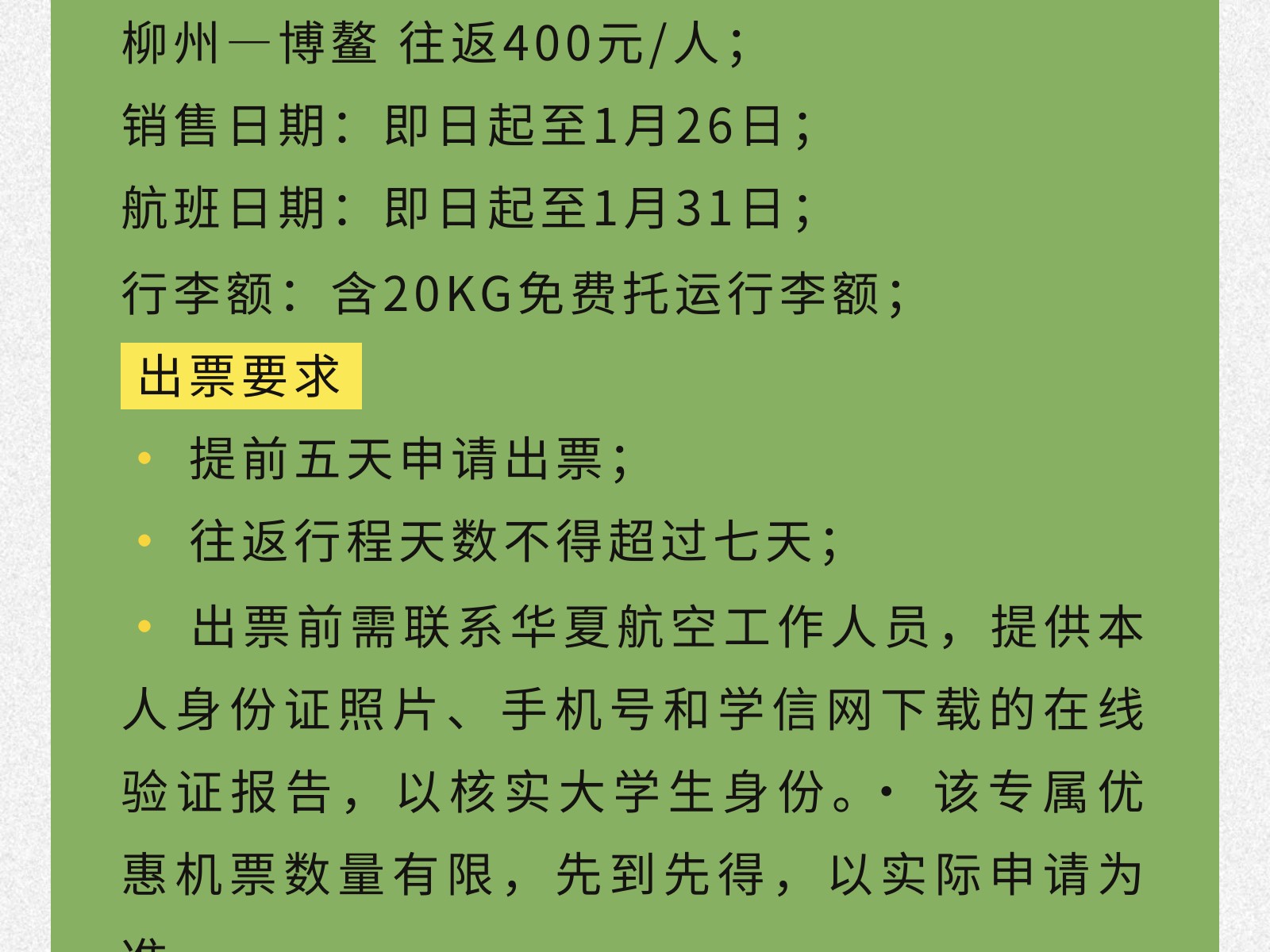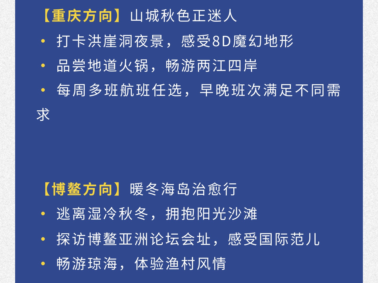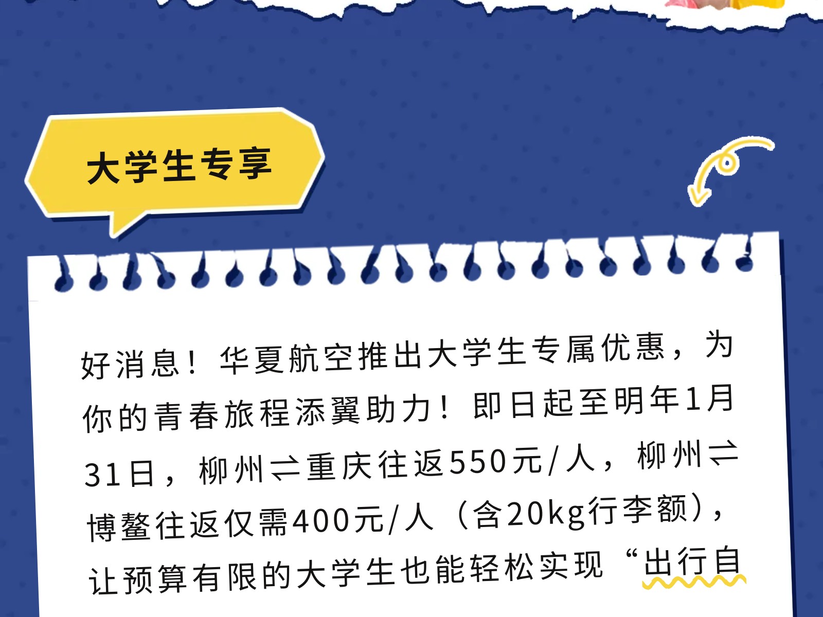 【青春專線】柳州?重慶/博鰲大學生機票來襲!雙向奔赴正當時 發(fā)布時間:2025年12月02日 10時來源:本站原創(chuàng)瀏覽:56 人次