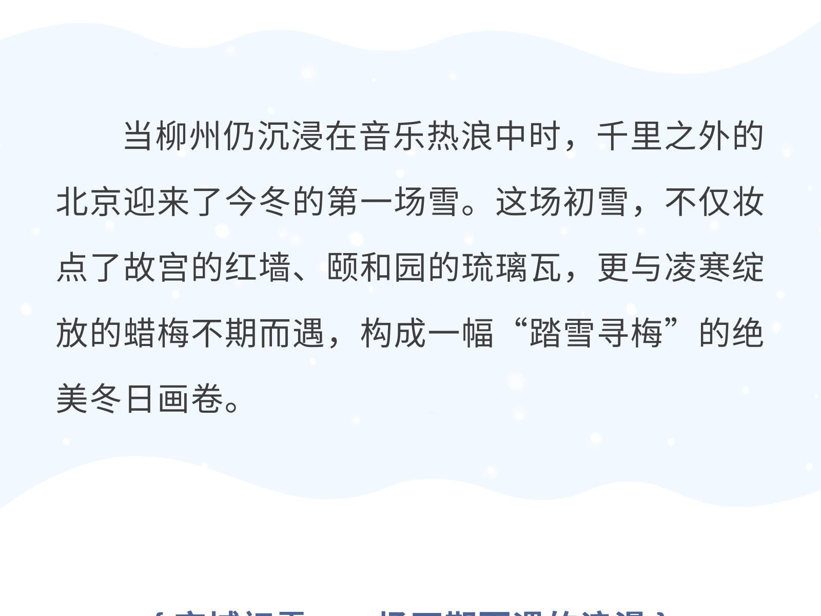 北京初雪已定檔!飛赴冬日限定浪漫,共賞踏雪尋梅的詩意 發(fā)布時(shí)間:2025年12月14日 10時(shí)來源:本站原創(chuàng)瀏覽:52 人次
