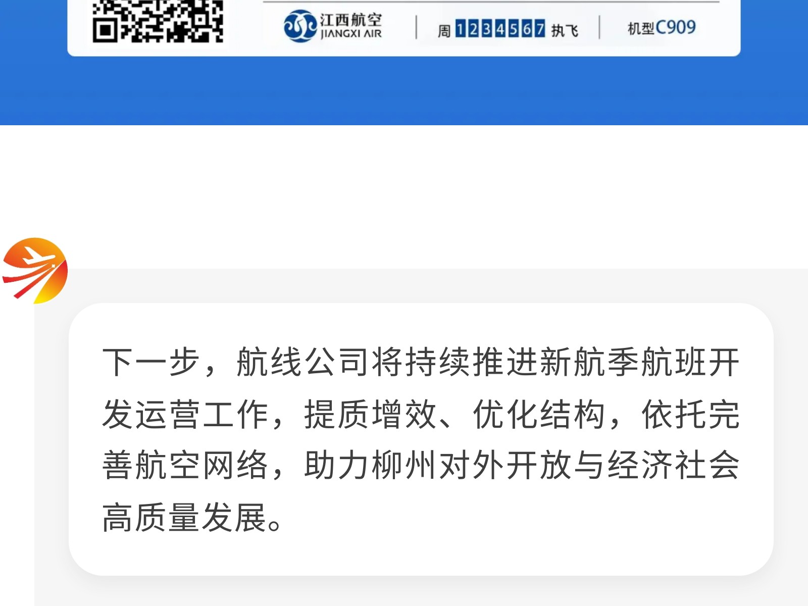 2026年夏秋航季南昌-柳州首航成功 發(fā)布時(shí)間:2026年04月01日 18時(shí)來(lái)源:本站原創(chuàng)瀏覽:4 人次