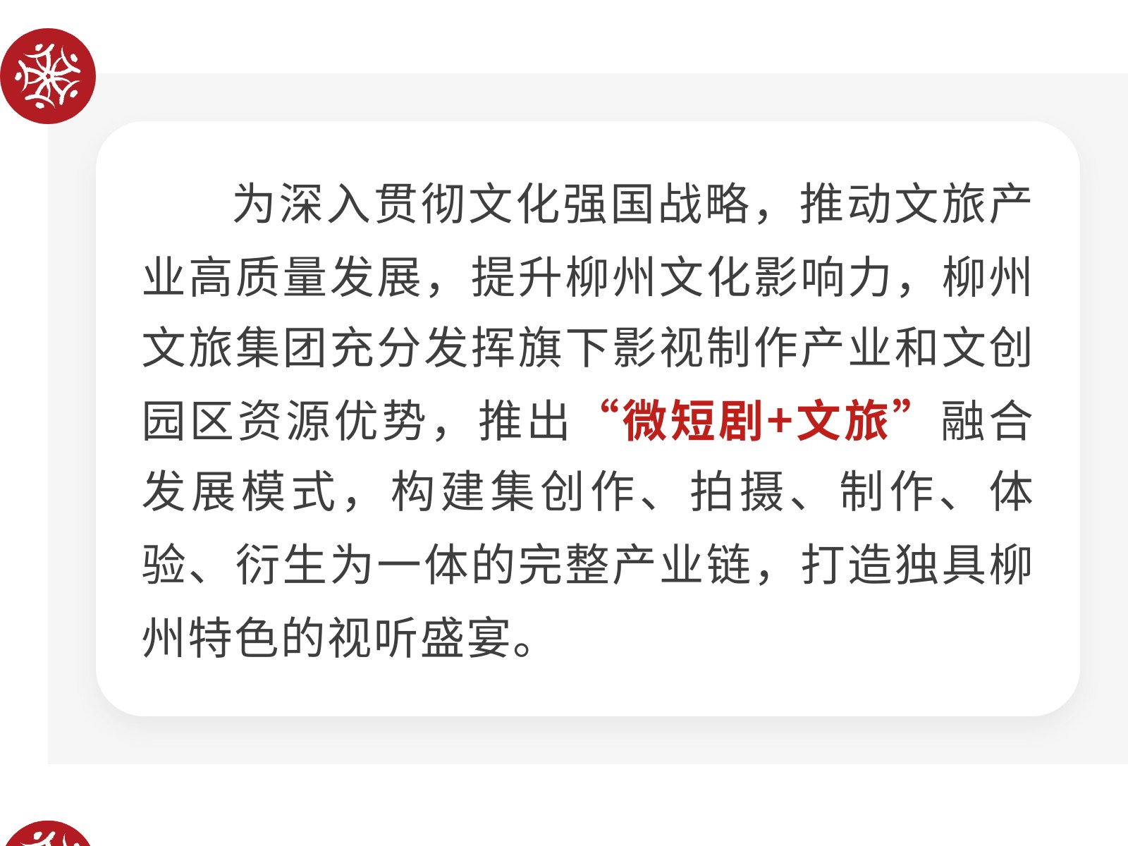 柳州文旅集團(tuán)探索“微短劇+文旅”融合發(fā)展新模式 發(fā)布時(shí)間:2025年07月02日 10時(shí)來(lái)源:本站原創(chuàng)瀏覽:225 人次