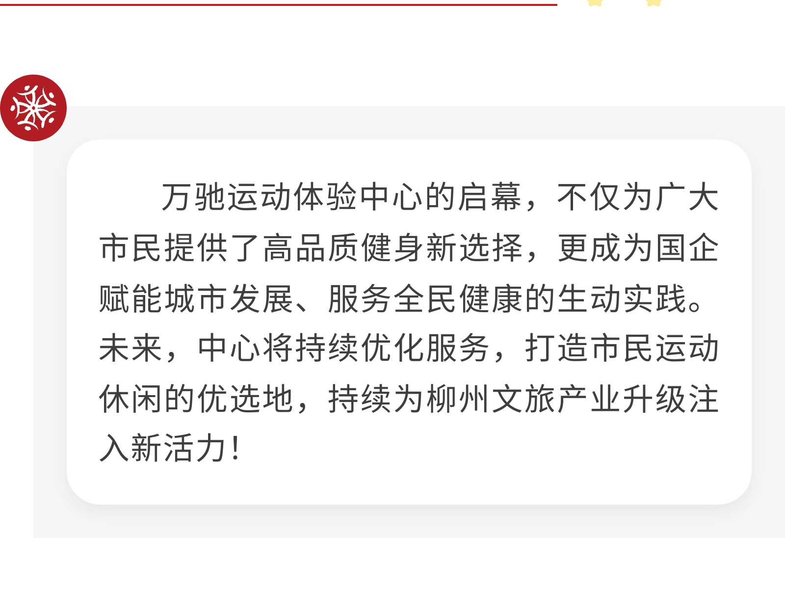【萬序亨通,馳志青云】柳空文創(chuàng)園萬馳運動體驗中心啟幕儀式圓滿舉行! 發(fā)布時間:2025年10月16日 10時來源:本站原創(chuàng)瀏覽:112 人次
