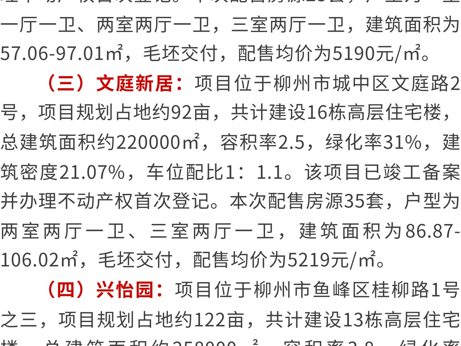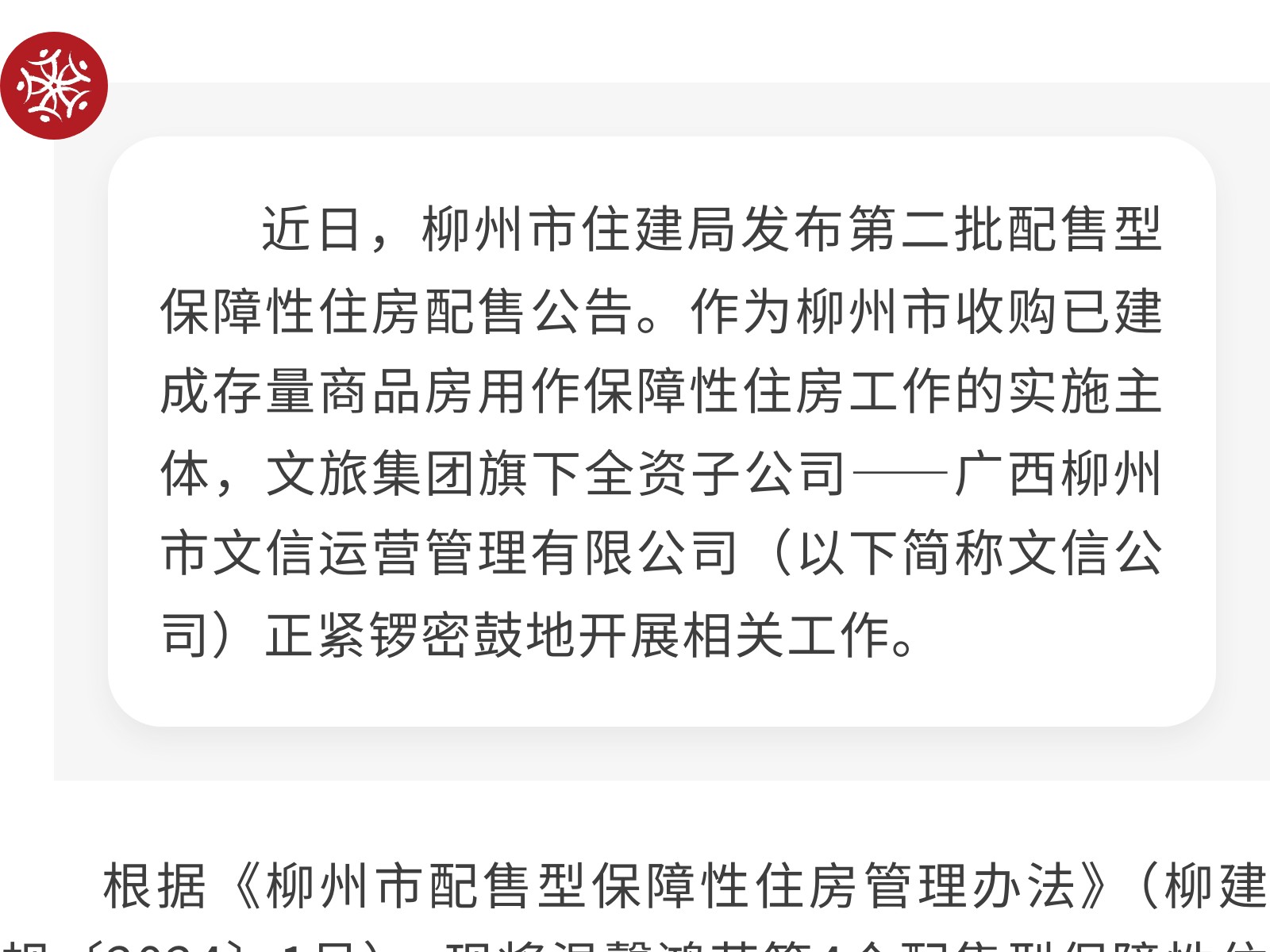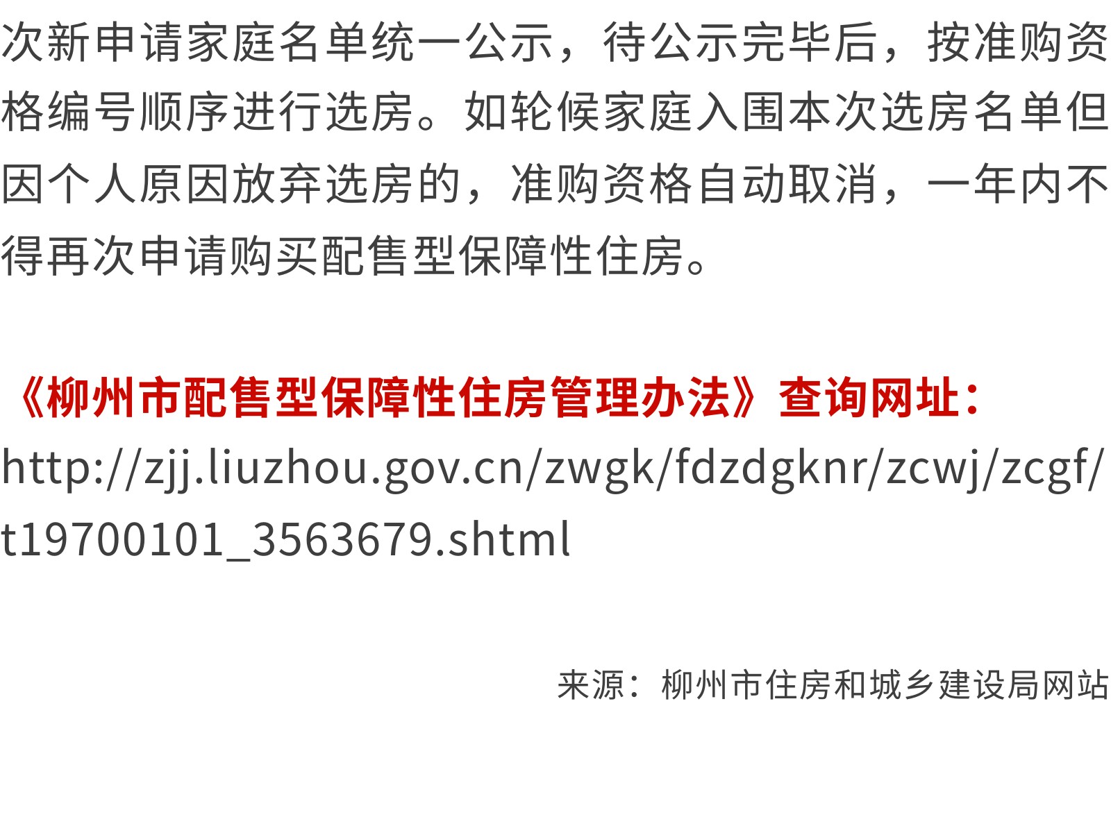 柳州市第二批配售型保障性住房配售公告 發(fā)布時(shí)間:2025年11月08日 11時(shí)來源:本站原創(chuàng)瀏覽:132 人次