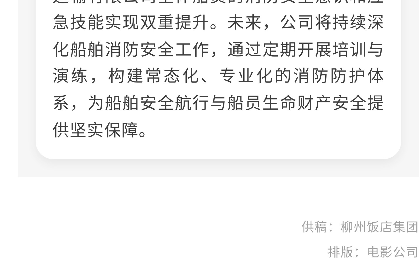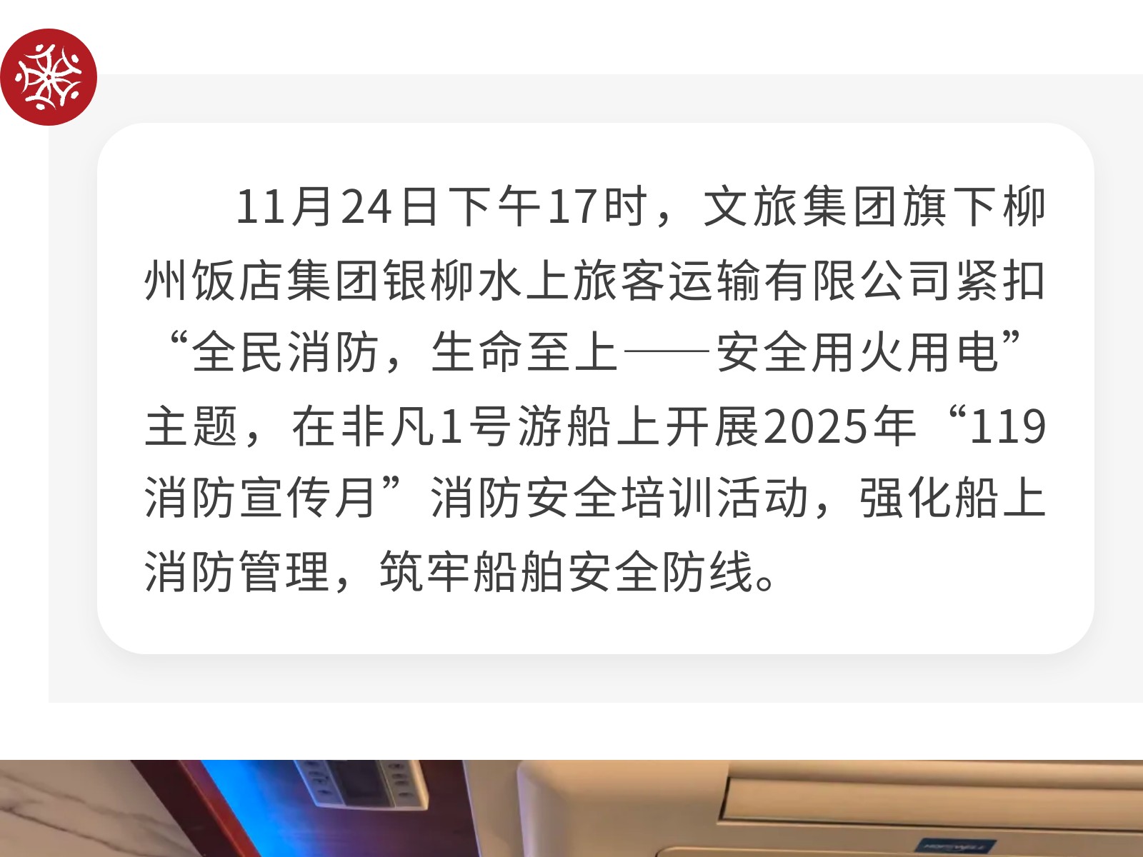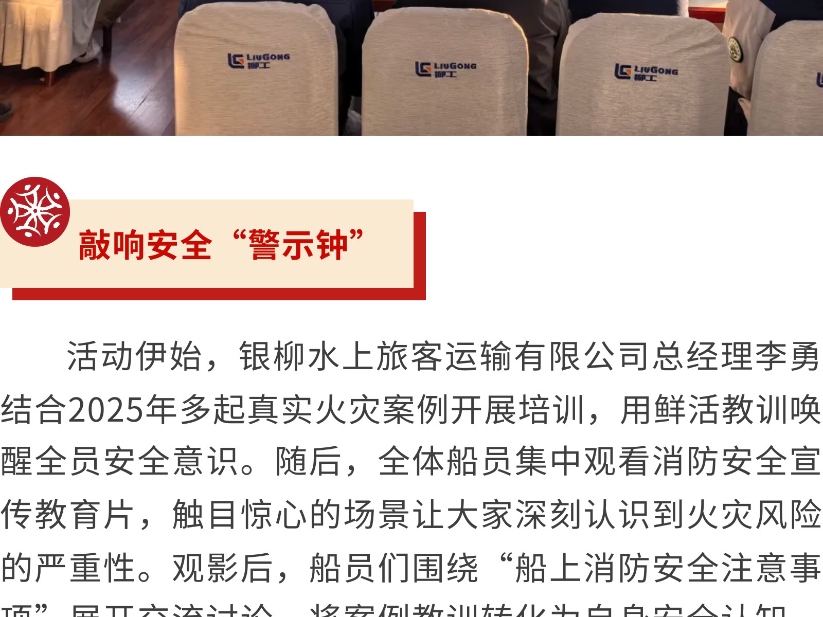 【強化船上消防,守護航行安全】銀柳水上旅客運輸有限公司開展消防安全培訓活動 發(fā)布時間:2025年12月09日 10時來源:本站原創(chuàng)瀏覽:28 人次