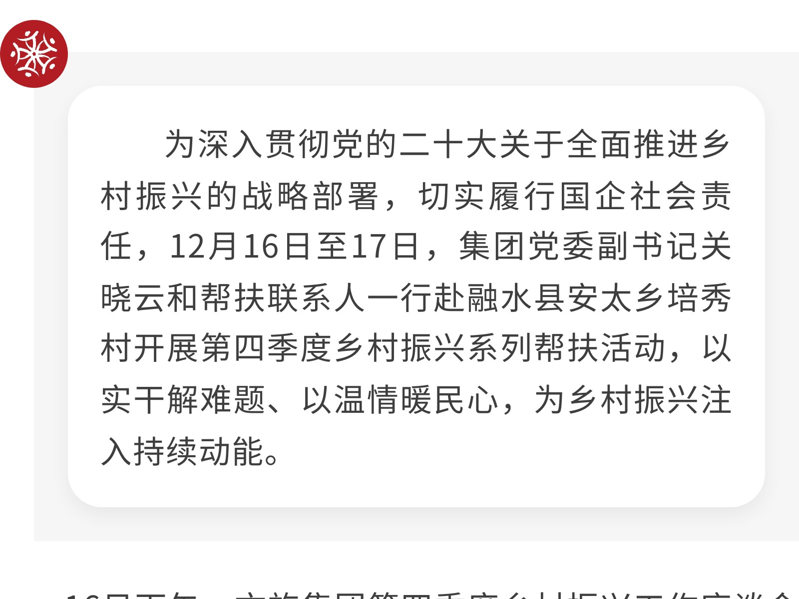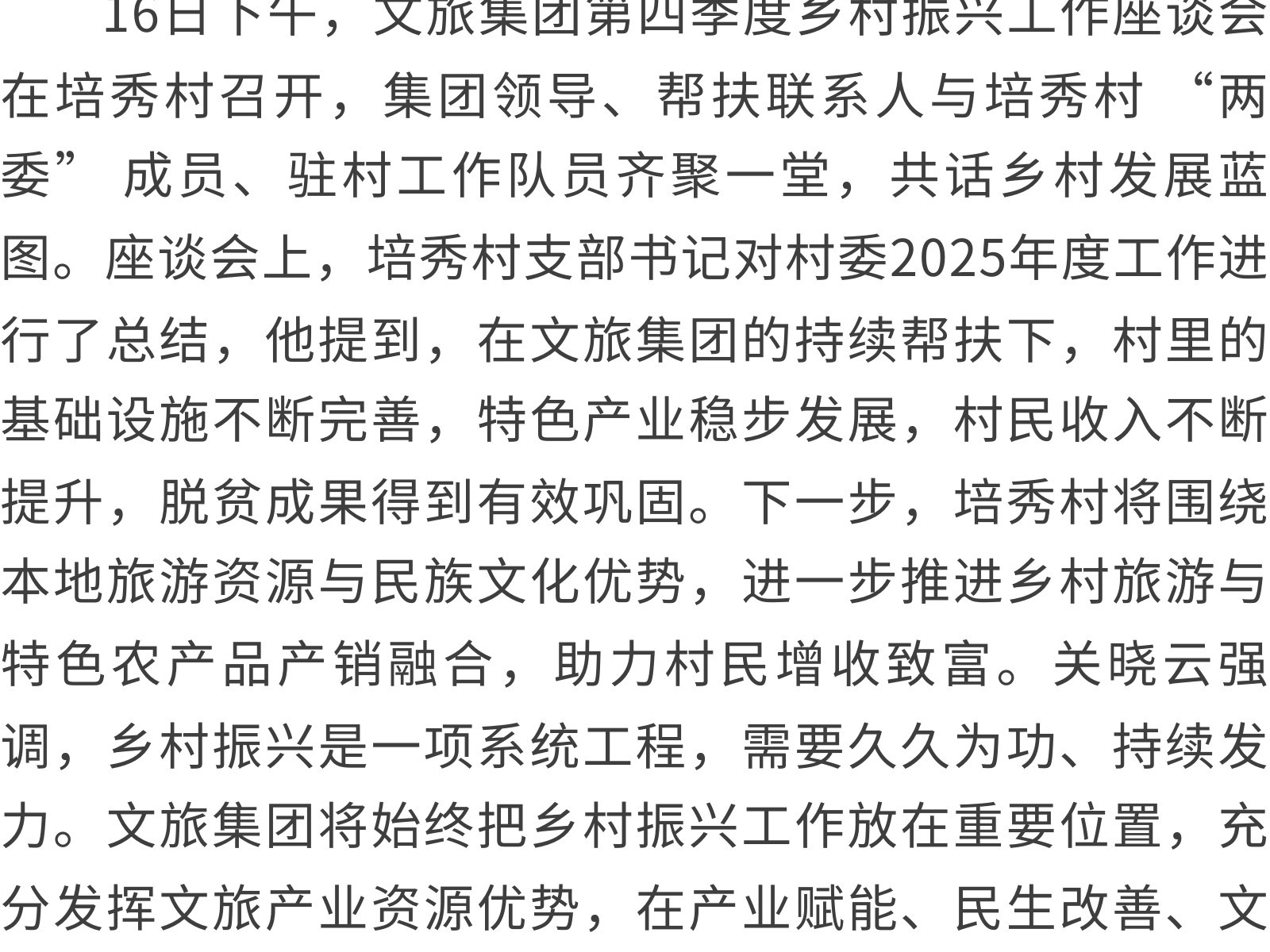 【文旅賦能繪新卷 結(jié)對(duì)幫扶暖心田】文旅集團(tuán)開展第四季度鄉(xiāng)村振興工作 發(fā)布時(shí)間:2025年12月19日 10時(shí)來(lái)源:本站原創(chuàng)瀏覽:46 人次