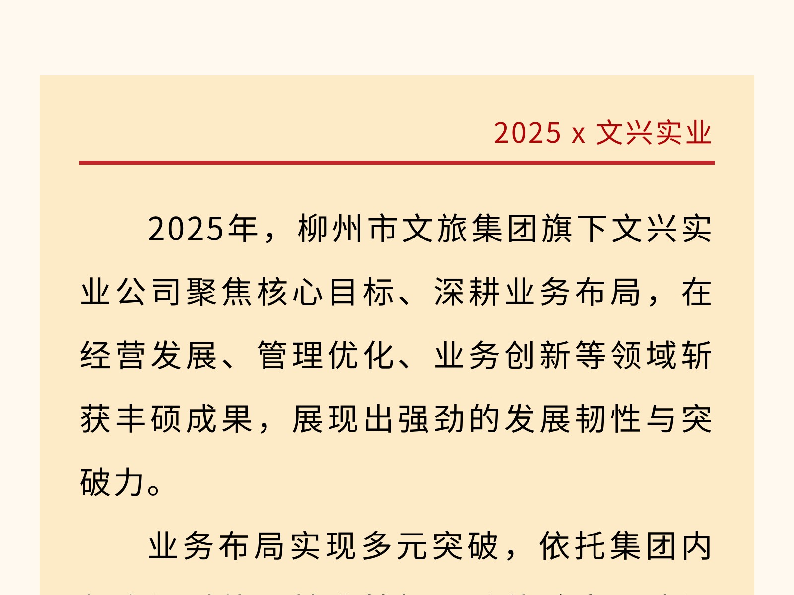 【文旅聚勢2025】多元創(chuàng)新拓新局,實(shí)干賦能高質(zhì)量發(fā)展——文興實(shí)業(yè)激活發(fā)展新動能 發(fā)布時間:2025年12月24日 10時來源:本站原創(chuàng)瀏覽:43 人次