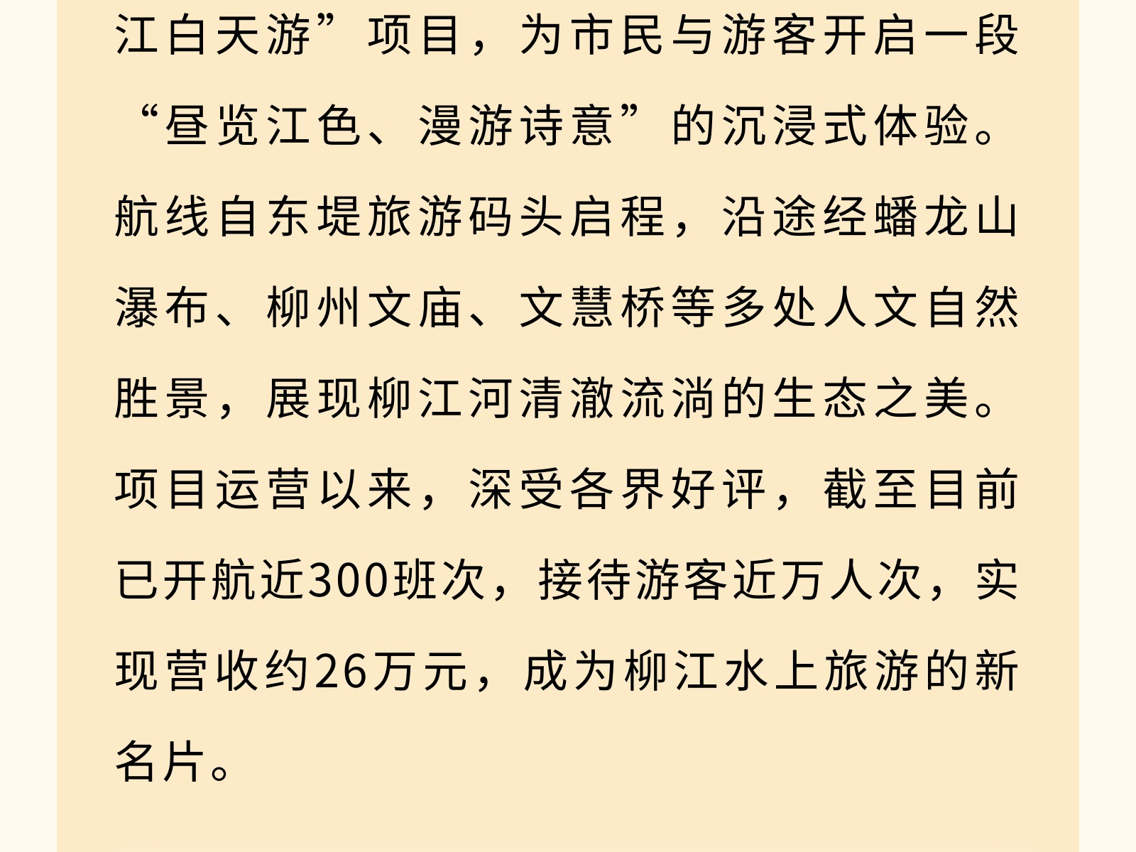 【文旅聚勢(shì)2025】碧水映城,風(fēng)帆勁起——百里柳江公司書寫文旅融合新篇章 發(fā)布時(shí)間:2025年12月25日 10時(shí)來源:本站原創(chuàng)瀏覽:43 人次