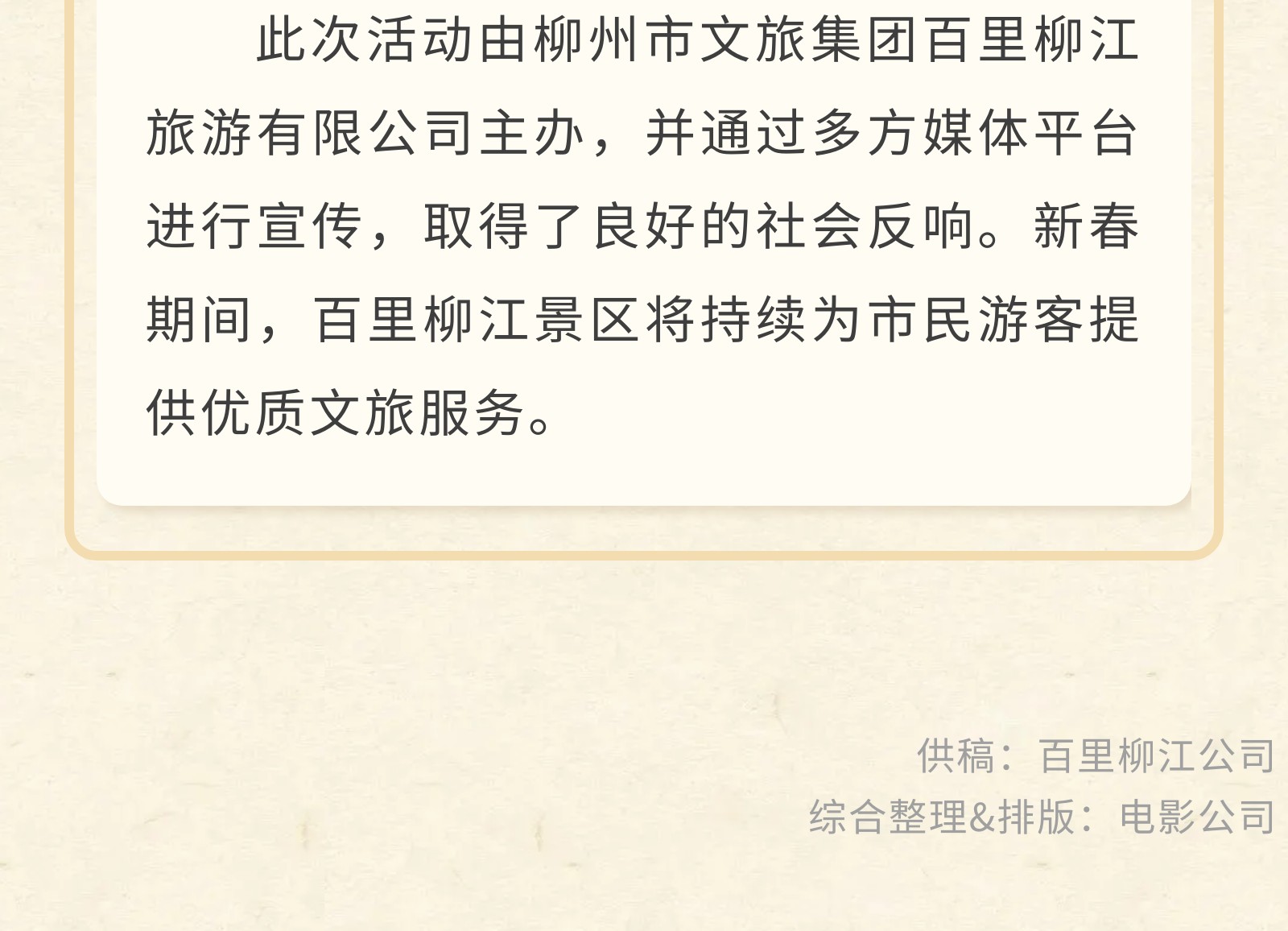 版權(quán)所有:廣西柳州市文化旅游投資發(fā)展集團(tuán)有限公司 地址:柳州市柳北區(qū)北雀路129號(hào)柳空文創(chuàng)園3號(hào)文創(chuàng)綜合樓10樓