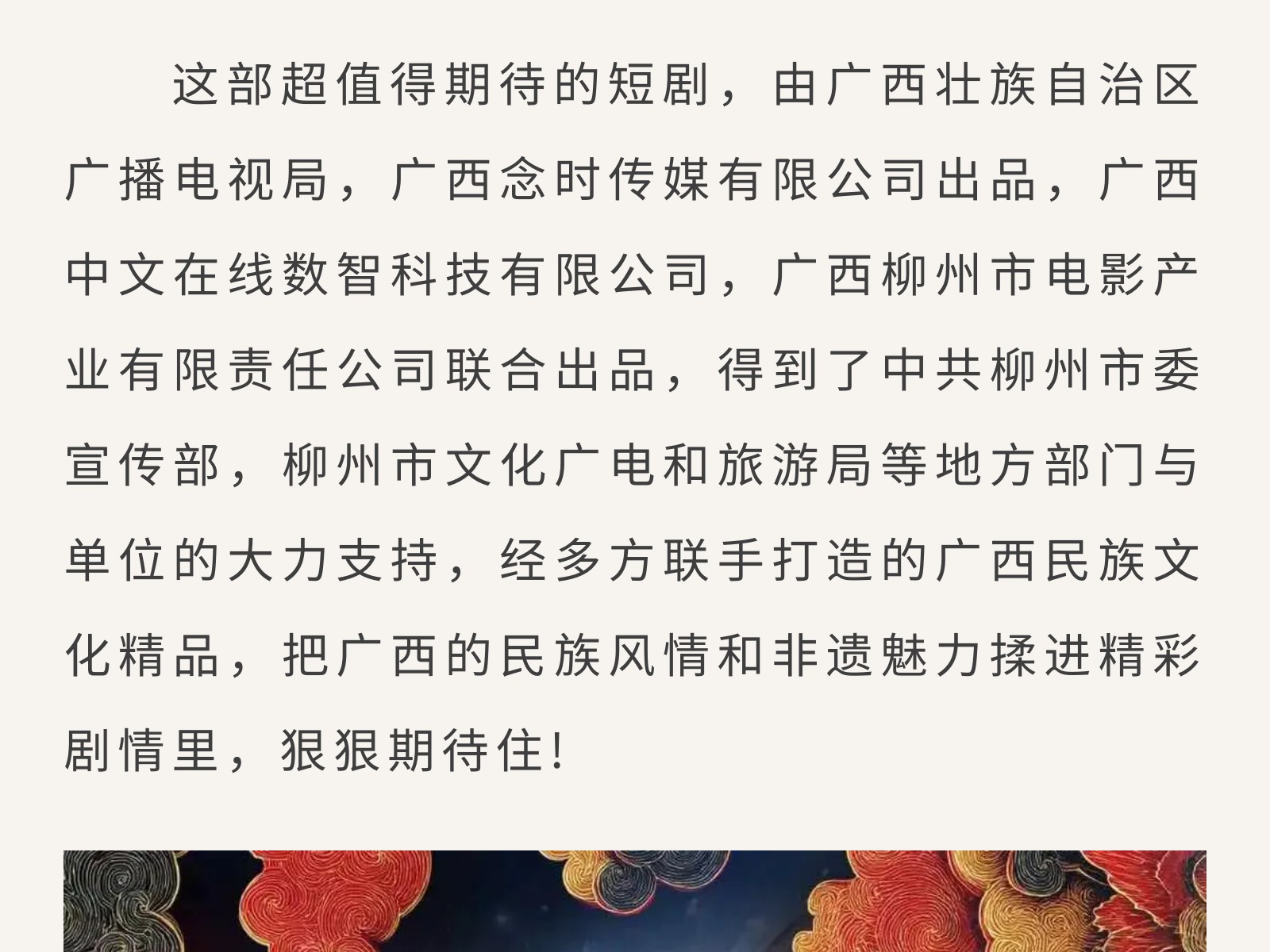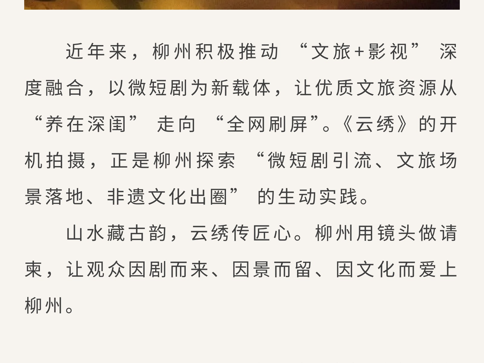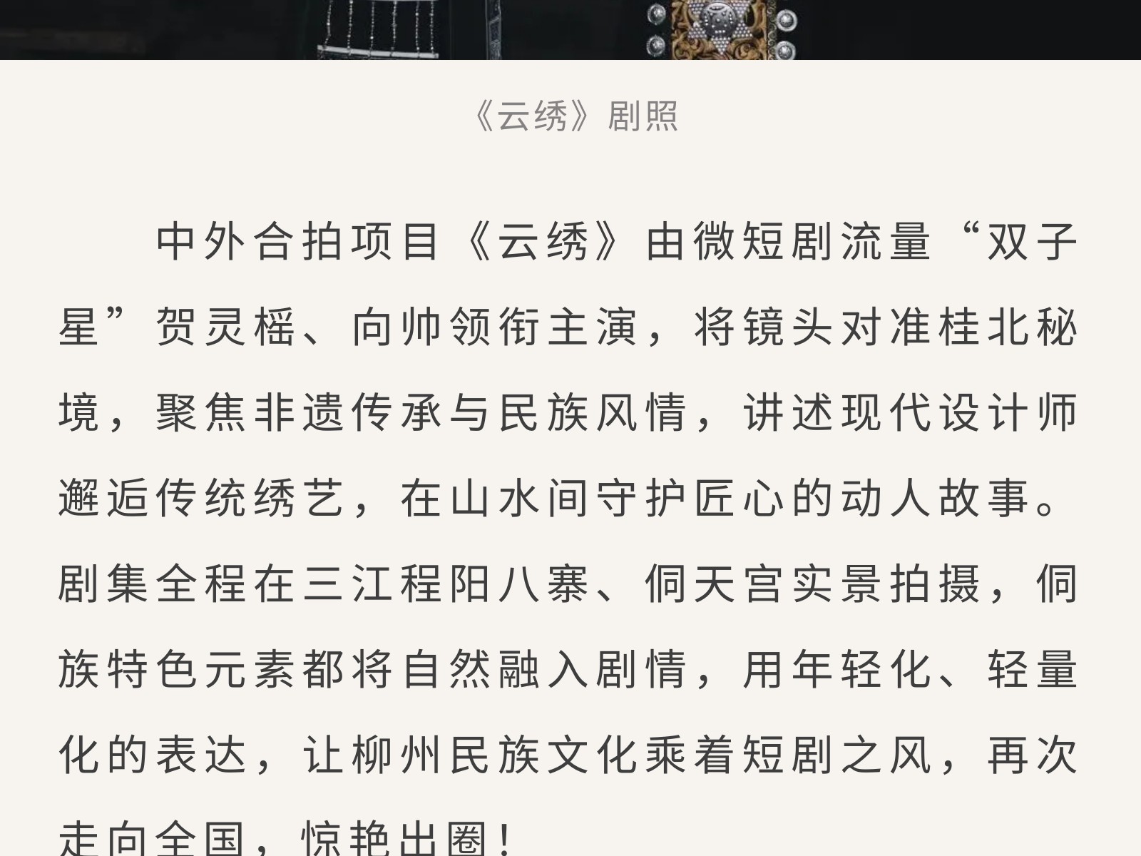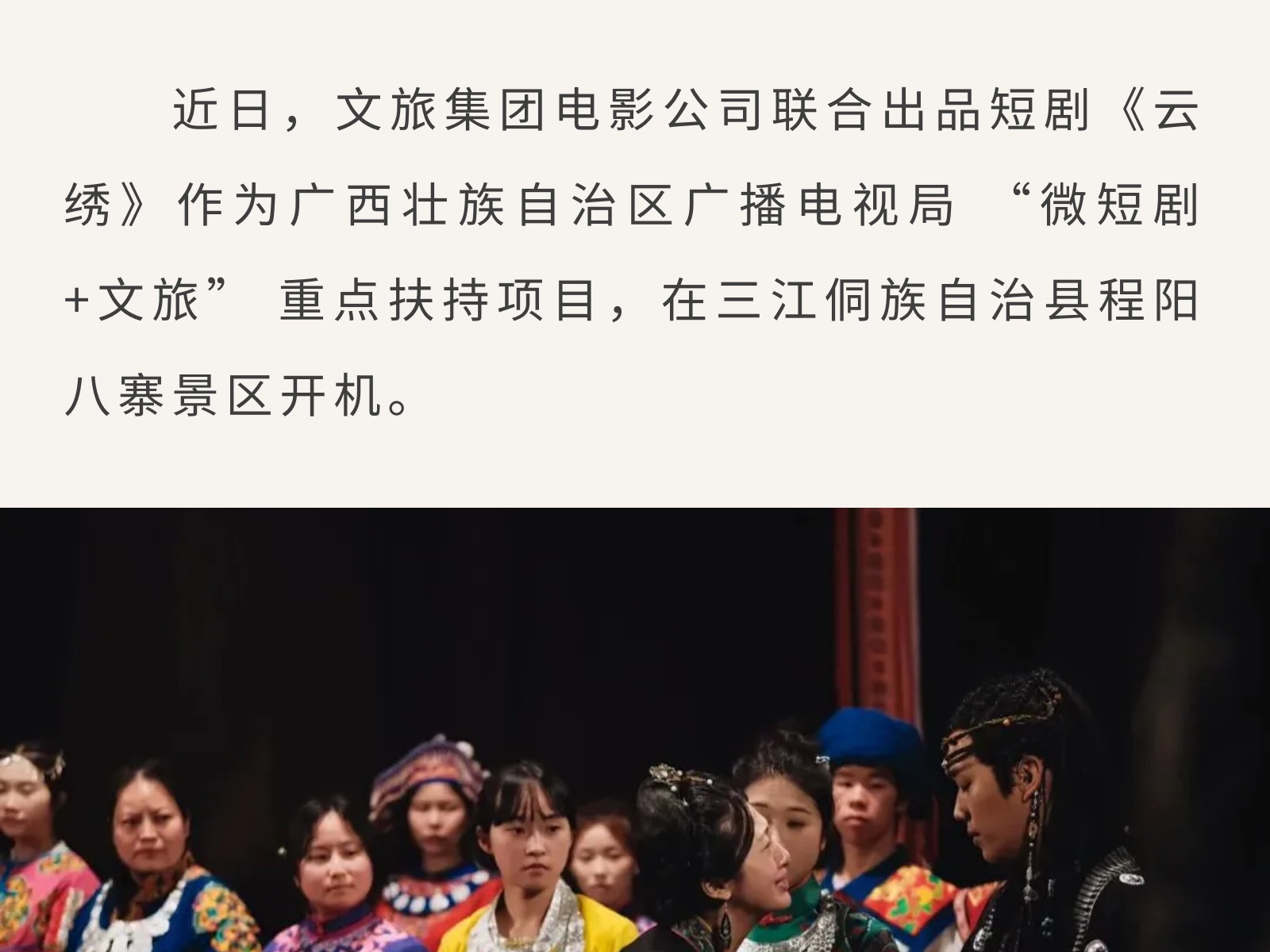 廣西“微短劇+文旅” 重點扶持項目《云繡》開機,把非遺風情拍入鏡頭里 發(fā)布時間:2026年03月06日 10時來源:本站原創(chuàng)瀏覽:51 人次