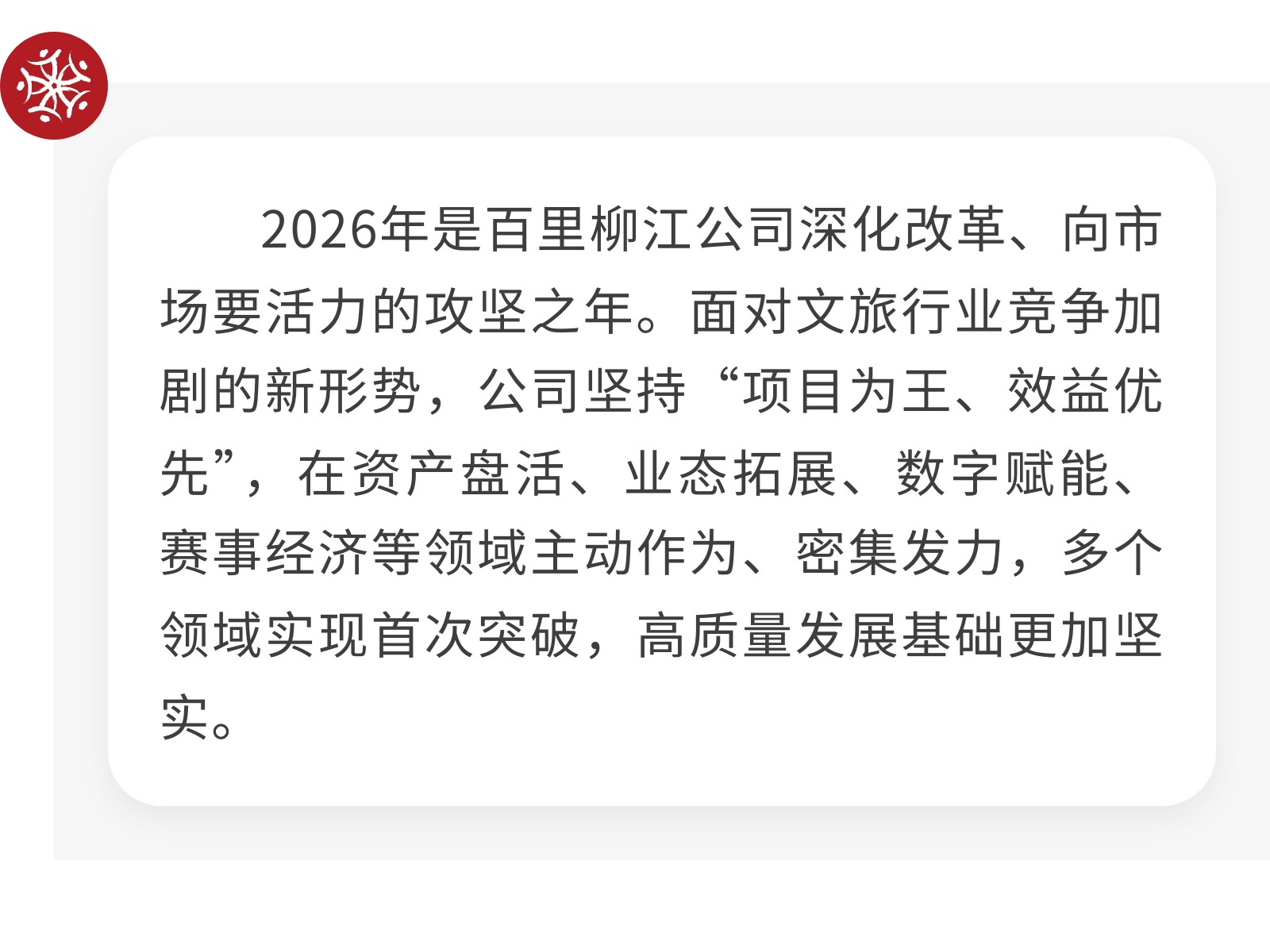 百里柳江公司:主動(dòng)作為抓項(xiàng)目,多元布局促發(fā)展 ——百里柳江公司開(kāi)年項(xiàng)目運(yùn)作多點(diǎn)突破,激活高質(zhì)量發(fā)展新動(dòng)能 發(fā)布時(shí)間:2026年04月14日 11時(shí)來(lái)源:本站原創(chuàng)瀏覽:7 人次