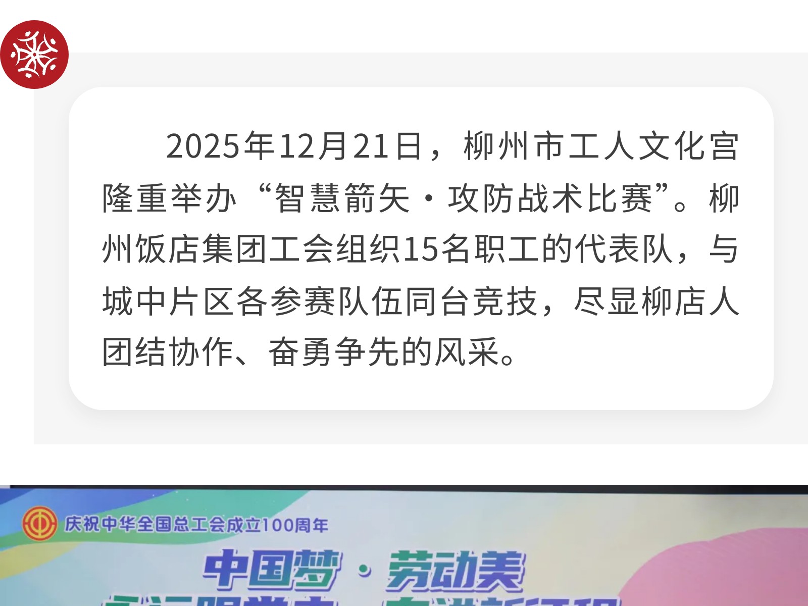 智慧箭矢,誰與爭鋒!——柳州飯店集團工會戰(zhàn)隊閃耀城中職工文化活動賽場 發(fā)布時間:2025年12月30日 11時來源:本站原創(chuàng)瀏覽:30 人次